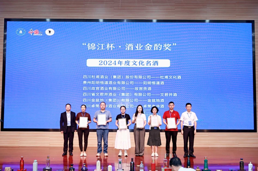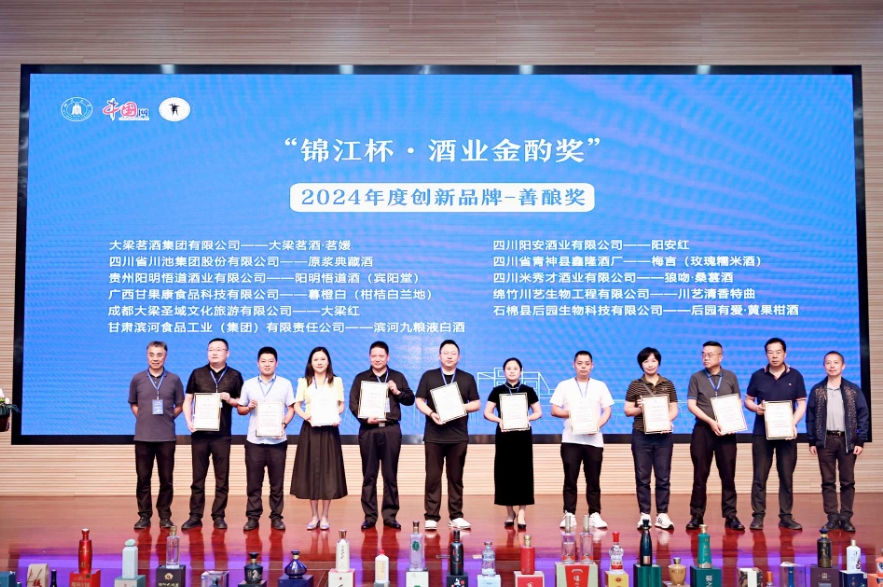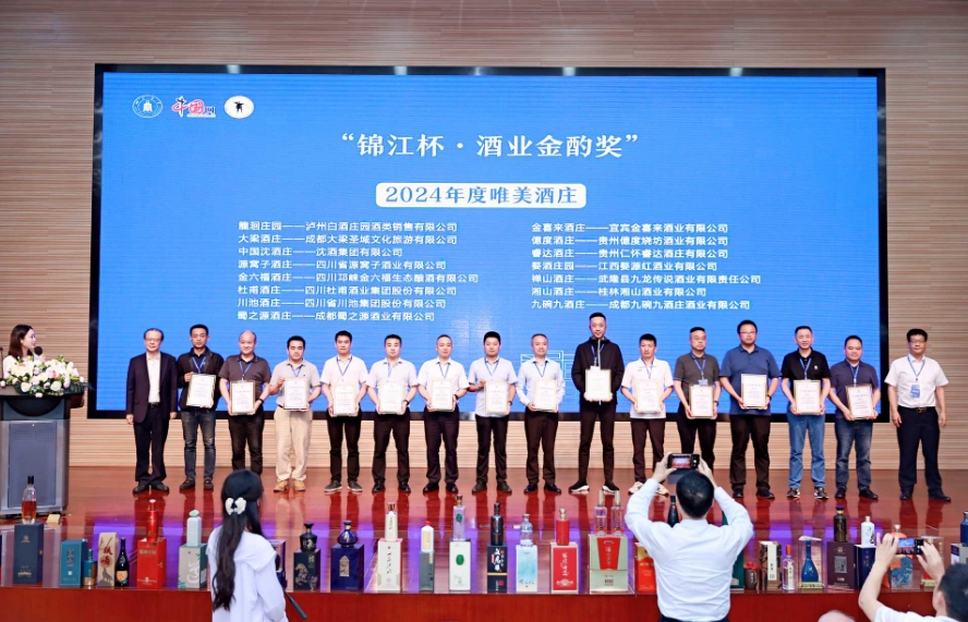 其中,中道華普設計集團、四川華宇瑞得科技獲“2024年度酒業(yè)卓越成就獎”;金六福·熊貓酒、白金酒(金壇)、大梁茗酒、湘山老酒、源窩子老酒獲評“2024年度影響力品牌”;杜甫文化酒、陽明悟道酒、故宮貢酒等六款產(chǎn)品獲評“2024年度文化名酒”;龍洄莊園、大梁酒莊、中國沈酒莊等15家酒莊獲評“2024年度唯美酒莊”;唐莊醬酒、金喜來·酒谷窖藏、大梁茗酒·茗媛等數(shù)十款產(chǎn)品分別獲評“2024年度創(chuàng)新品牌-杰釀獎/佳釀獎/善釀獎”。