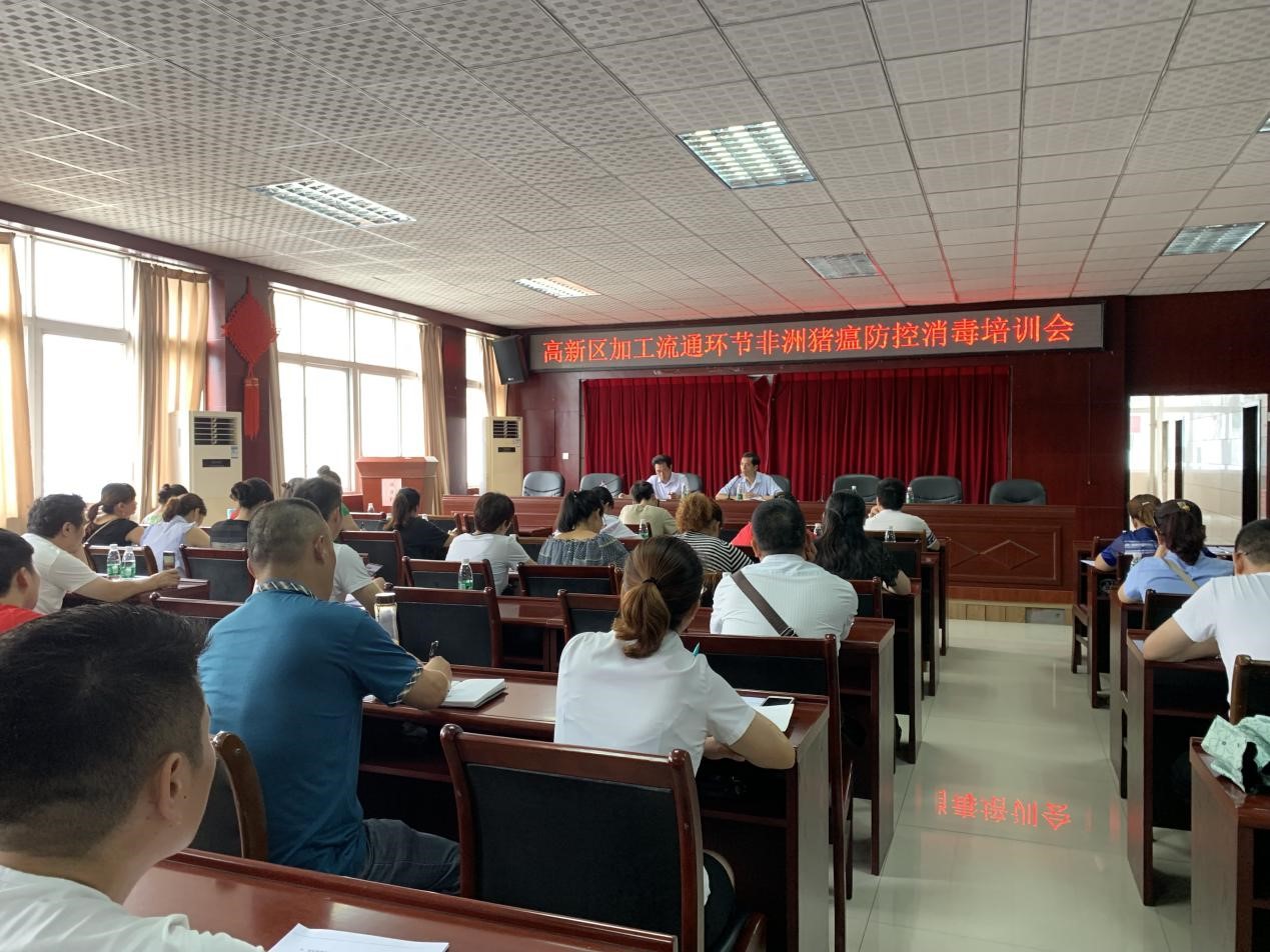 中國(guó)食品網(wǎng)訊 (魯秋嵐)7月19日,高新區(qū)食藥局聯(lián)合區(qū)非洲豬瘟防控辦組織轄區(qū)重點(diǎn)肉制品生產(chǎn)企業(yè)、農(nóng)貿(mào)市場(chǎng)、大型超市、大型餐飲單位、村社區(qū)干部、轄區(qū)監(jiān)管執(zhí)法人員共計(jì)60余人,召開高新區(qū)加工流通環(huán)節(jié)非洲豬瘟防控消毒培訓(xùn)會(huì)。