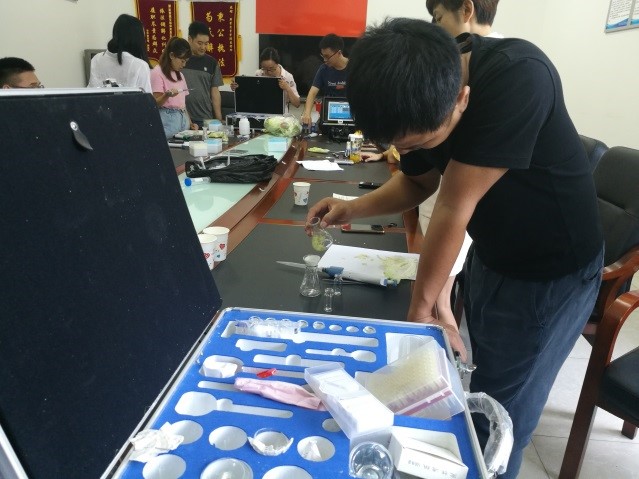 為提高培訓效果,培訓會實行小班分批輪訓,分3場次“手把手”技能實操。培訓內容圍繞快速檢測理論、實際操作、隨堂抽問考核,培訓檢測指標以農殘、羅丹明B、蘇丹紅項目常規項目為主,培訓方式要求參訓人員訓后隨堂實際手操作,最后課堂檢驗培訓人員的學習掌握情況。