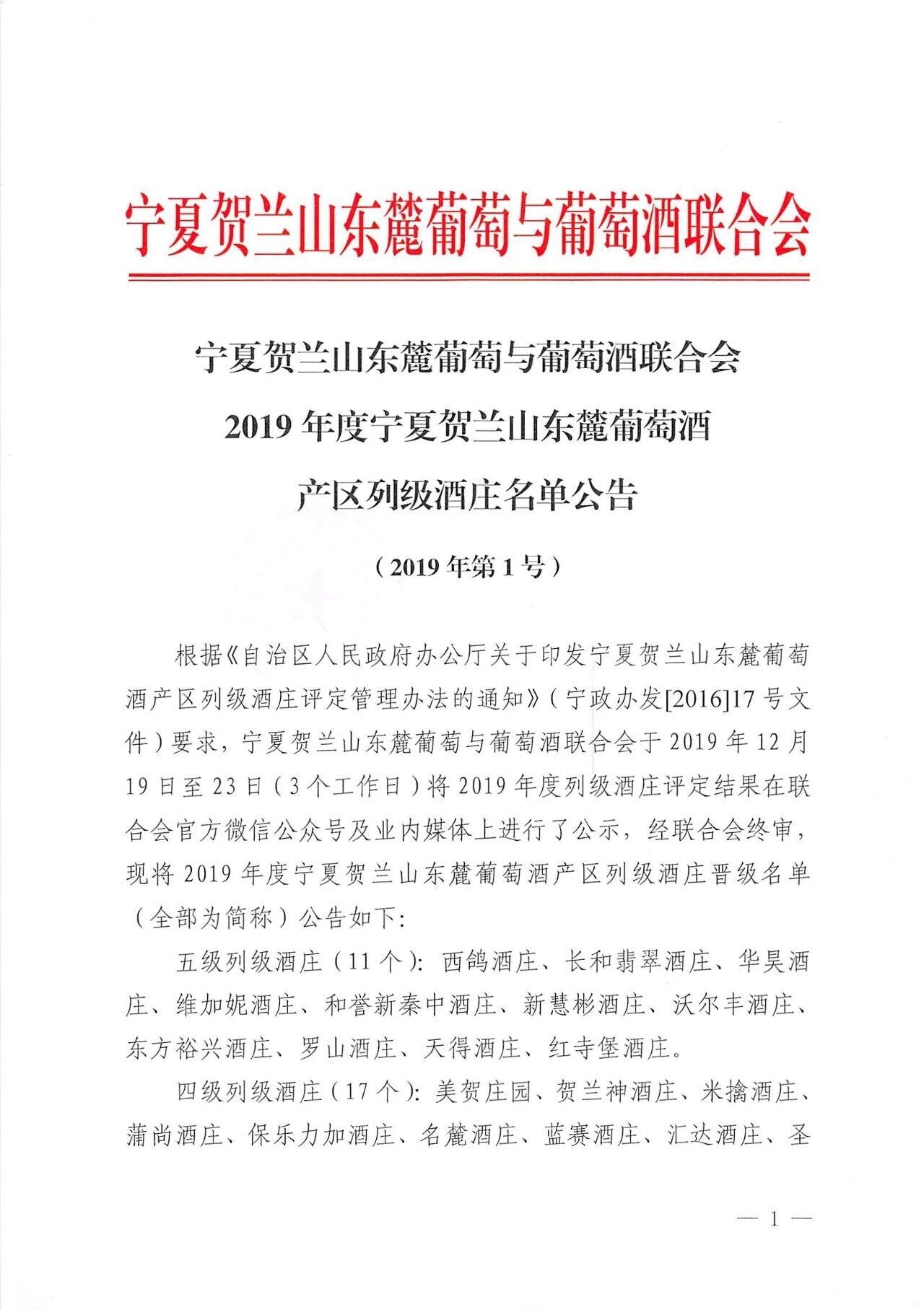 中國名酒莊網(wǎng)播報 葡萄酒核心產(chǎn)區(qū)寧夏賀蘭山,2019年度寧夏賀蘭山東麓葡萄酒產(chǎn)區(qū)列級酒莊名單公告,二級到五級38個酒莊在列。