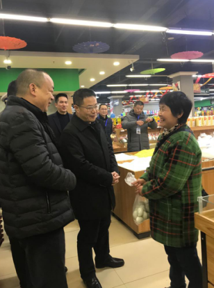 中國食品網播報 為深入落實樂至縣“春雷行動2020”暨知識產權保護執法行動,切實維護元旦、春節期間食品安全和消費者的合法權益,保障食品市場繁榮穩定,12月31日,資陽市樂至縣縣委書記文勇、縣長彭玉秀帶隊督導檢查樂至縣食品經營安全工作。樂至縣市場監督管理局局長倪理、副局長楊永健等陪同檢查。