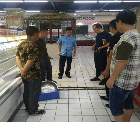 中國食品網訊(李旭來)2018年7月19日,受強降雨影響,蘆山縣新雅都購物有限公司賣場進水被淹,被淹水位5cm。為及時排查企業受災后存在的食品和消防等方面安全隱患,防范災后安全事故發生,確保企業恢復正常營業,7月25日,蘆山縣食藥監局聯合縣發經、安監、工商質監、電力及公安消防大隊等單位對蘆山縣新雅都購物有限公司進行檢查。