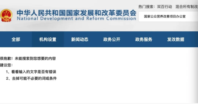 但在中華人民共和國國家發展和改革委員會的官網中,并未查到國家公眾營養改善項目辦公室這一機構。