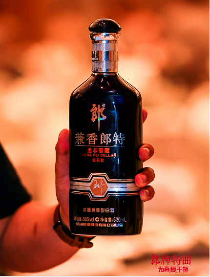 「這酒我喝了以后覺得非常好,也特別分享給我身邊很多朋友?!姑戏乾F(xiàn)場(chǎng)親自介紹講解,窖藏酒為兼香酒體,融合了川酒主流的兩種工藝優(yōu)點(diǎn),將兩種香型的風(fēng)格精心勾調(diào)于一體,并用4字總結(jié)——「濃頭醬尾」;分「寶石款」與「琥珀款」兩款;瓶身設(shè)計(jì)中均有孟非親筆簽名鐫刻。更為特別的是,容量設(shè)定為520ml,諧音「我愛你」,充分展現(xiàn)了郎牌特曲對(duì)愛意最真切的表達(dá)。