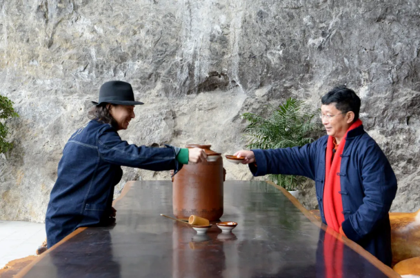 △著名音樂人趙照(左)與著名作家阿來(右)在郎酒莊園仁和洞