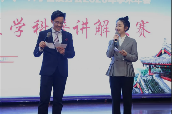 在分會場一區,全國醫學科普講解大賽于8日中午13點開始,2018級碩士研究生李夢雪與四川省電視臺一級播音員曾錚老師一起主持了此次大賽。