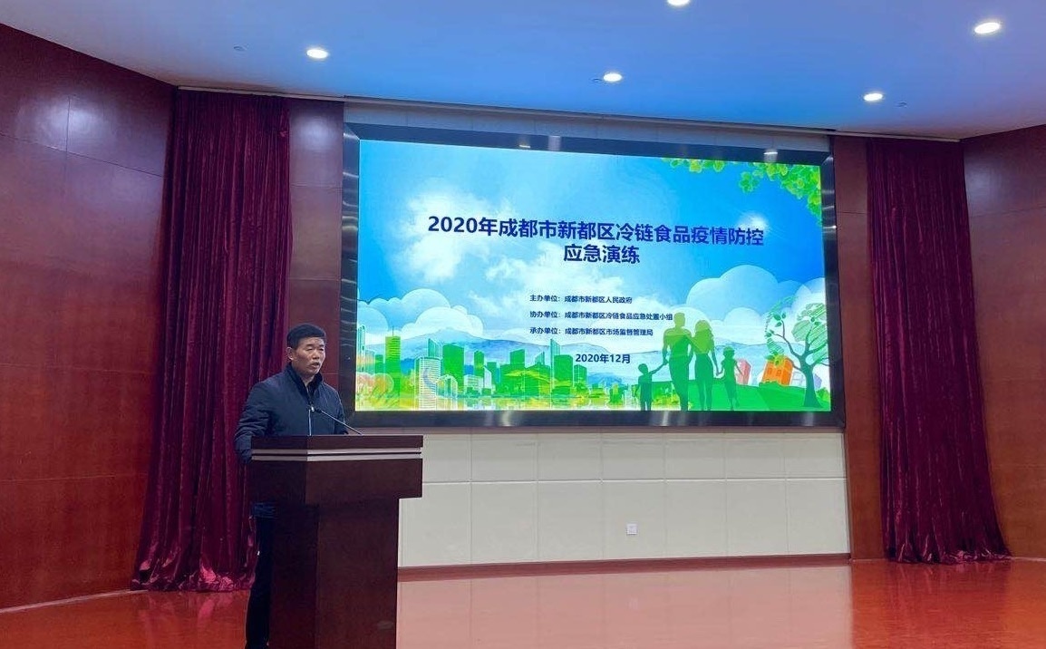 為突出抓好冷鏈疫情防控“底線”工作,深入推進(jìn)春雷行動2021”暨冷鏈物流疫情防控執(zhí)法行動,12月31日上午,由新都區(qū)食安辦牽頭組織,相關(guān)部門密切配合,共同在新都區(qū)市場監(jiān)督管理局舉辦了2020年冷鏈?zhǔn)称芬咔榉揽貞?yīng)急演練。活動由區(qū)食安辦副主任鄢攀主持,區(qū)食安辦主任劉傳銀,區(qū)食安委相關(guān)成員單位、各鎮(zhèn)(街道)、各產(chǎn)業(yè)功能區(qū)食品分管領(lǐng)導(dǎo)共70余人現(xiàn)場觀摩演練。