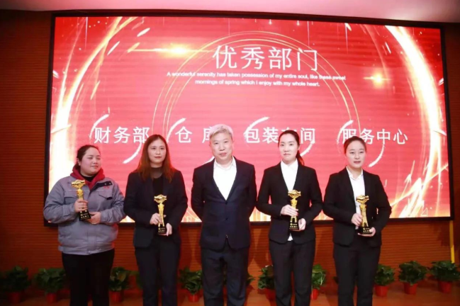 會上對金醬酒業2020年度27名優秀員工,13名愛崗敬業員工,8名技術能手,8名優秀干部,35名銷售精英,11名銷售之星,2名先進人物,4個優秀部門,3支精英銷售團隊進行了表彰和頒獎。鼓勵員工發揮團隊精神,以公司利益為中心,相互理解包容齊心協力。