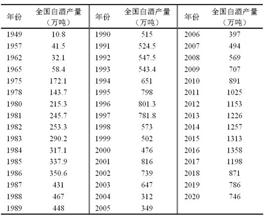 隨著中國糧食產(chǎn)量增長,原材料相對充足,且國家為了保護(hù)傳統(tǒng)工藝且促進(jìn)出口創(chuàng)匯,大力支持白酒企業(yè)發(fā)展,微觀上各酒廠通過整合提高生產(chǎn)效率,使得中國白酒產(chǎn)量由1949年的10.8萬噸增長到1957年產(chǎn)量41.5萬噸,期間復(fù)合增長率18.33%。茅臺酒產(chǎn)量也從1952年的75噸,增長到1958年的627噸。