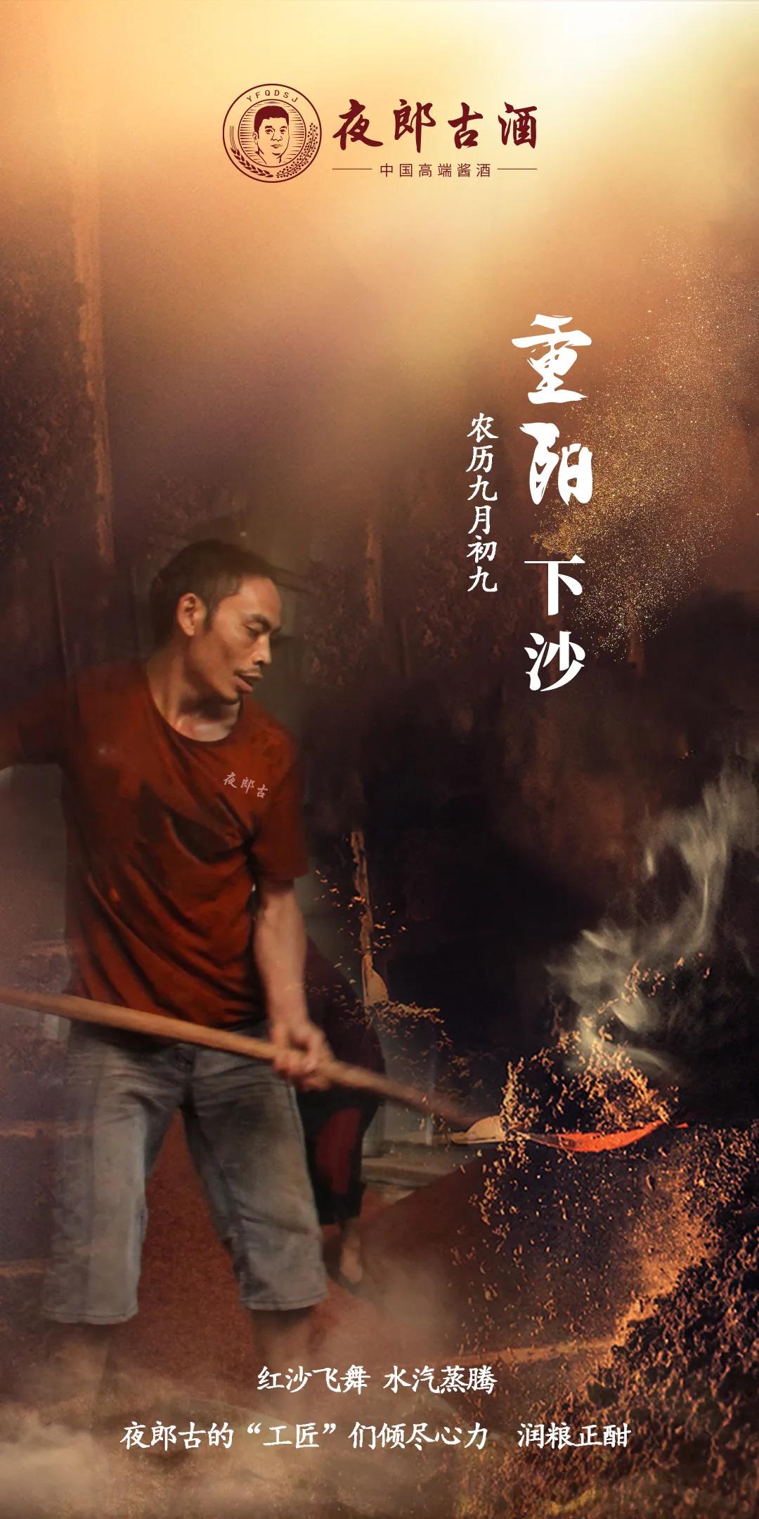 重陽下沙忙,夜郎戰秋糖!市場熱火朝天的同時,生產也是生機勃發。10月14日同時也是“重陽下沙”的重要時節,紅沙飛舞,水汽蒸騰,夜郎古的“工匠”們傾盡心力,潤糧正酣,山水之下的夜郎酒谷煥發出勃勃生機。