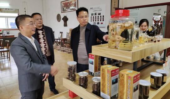 在百年傅氏黃精博物館和黃精制品生產車間,負責人傅華松逐一介紹了黃精的品種、分布、藥用價值和藥用淵源,特別對作為非物質文化遺產和祖?zhèn)骷妓嚨?ldquo;傅氏九制黃精工藝”和目前已經推出的黃精果脯、黃精茶、黃精酒等產品就科技層面進行了詳細推介,對如何進一步發(fā)揮種植基地、博物館、生產車間的科普基地作用提出了設想和安排。