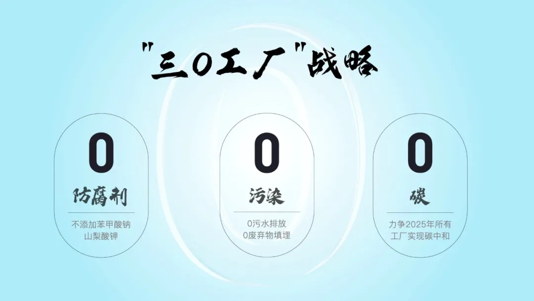 10月26日,元氣森林召開供應鏈及食品安全戰略發布會,正式發布“三0工廠”戰略,所謂“三0工廠”戰略,就是元氣森林在自建工廠的基礎上,進一步提高工藝標準,逐步實現“0防腐劑”、“0污染”以及“0碳”等三大目標。