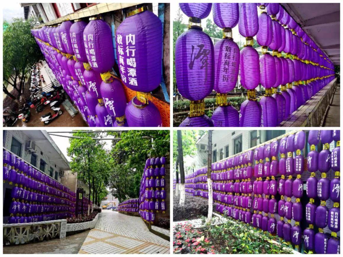 走進仙潭酒廠,撲面而來的便是一股股濃郁醇厚的醬酒的味道,引入眼簾的是鋪掛在兩側辦公樓面上高雅富貴紫色基調的燈籠,道路兩旁給人極強的視覺沖擊力,仿佛走進紫色世界,迫不及待的想探究下2021年獲得生態原產地產品保護認證的 “潭”牌醬香型(純糧固態發酵)系列酒的神秘。