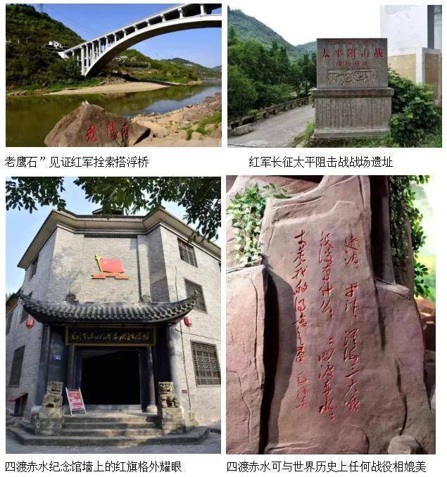 在赤水河畔太平渡口,太平渡渡口紀念碑巍然矗立,老鷹石、毛澤東及軍團首長渡口遺址,古鎮的長征街和紅軍街,紅軍驛站、炊事房舊址、分果實會場(紅軍食堂)、毛澤東住地舊址(榮盛通鹽號)、中國工農紅軍四渡赤水太平渡陳列館,以及館內珍藏著的大量文物和圖片,供游客在此駐足瞻仰。太平這座紅色古鎮,以其獨具特色的魅力,成為赤水河流域紅色旅游線上最亮麗的風景。
