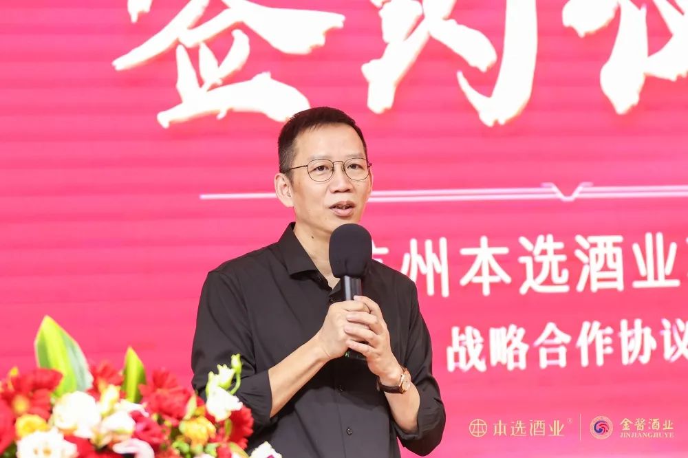 簽約儀式現場,金醬酒業(yè)董事長汪洪彬在致辭中表示,此次能與商源集團和本選酒業(yè)合作,是為了對卓越發(fā)展的追求,也是各方共同的目標。“合作的基礎是‘尊重’,尊重他人、尊重自己、尊重規(guī)則、尊重環(huán)境,在平等的合作中,保持對彼此的尊重,對規(guī)則的尊重,尤其是醬酒行業(yè),對自然環(huán)境的尊重,不斷加強對環(huán)保的意識,是長期穩(wěn)定合作、追求卓越發(fā)展的奠基石,希望各方在更廣闊的視野上相互成就彼此,成就未來。”