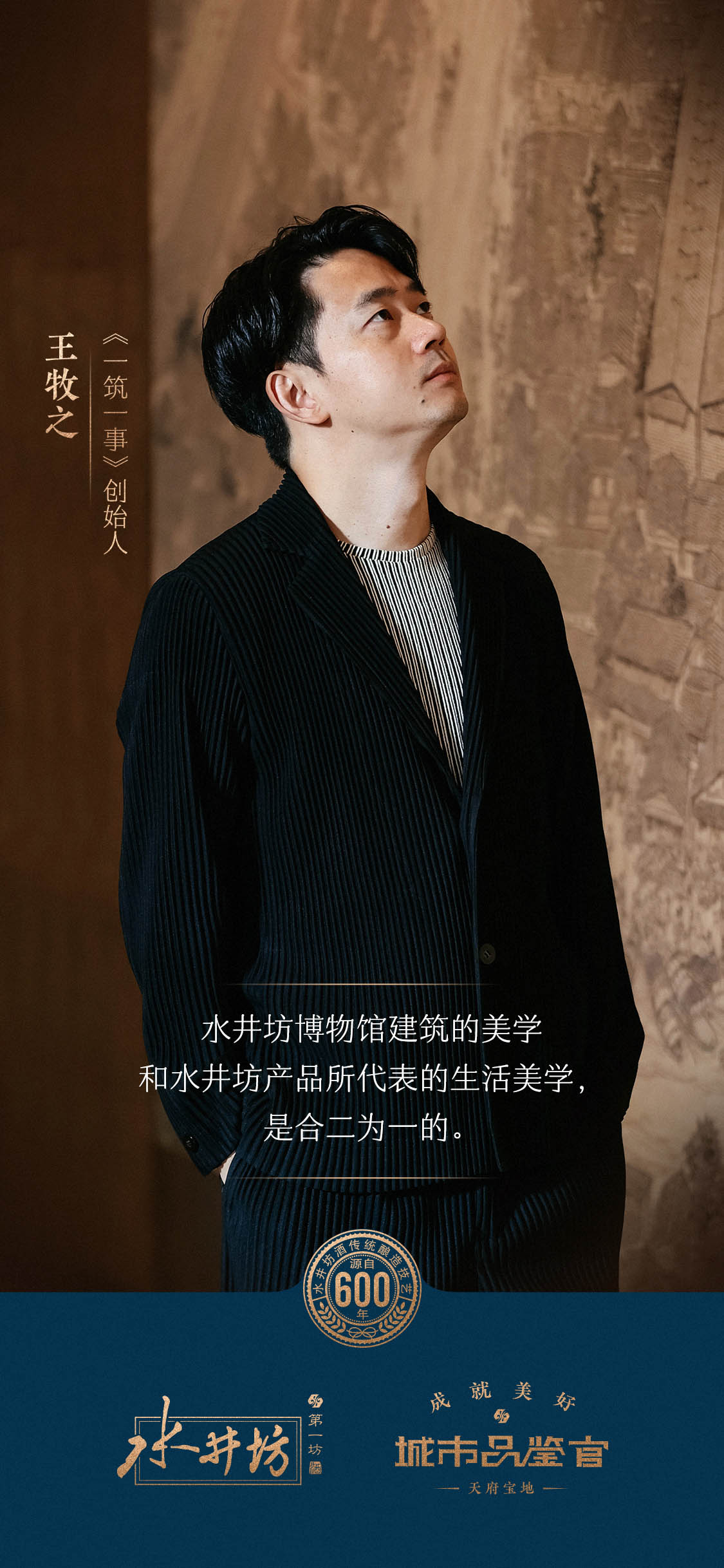 建筑本身的這種新老結合,也反映了水井坊作為白酒文化的一個發源地,或者是作為當代的白酒品牌是需要傳承的。所以,我覺得建筑的美學和水井坊這個產品所代表的生活美學,它是合二為一的。