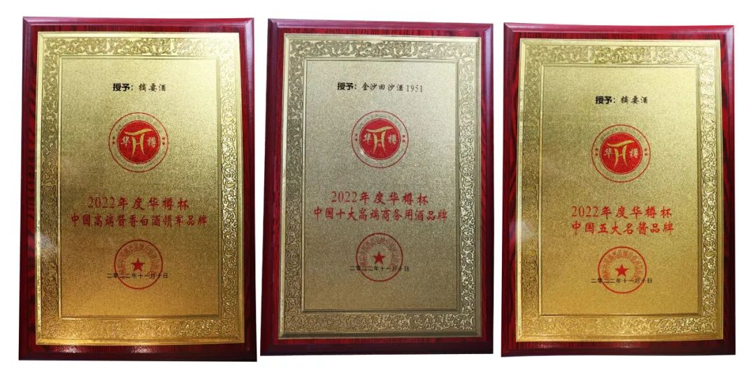 與此同時,摘要·匠師版獲得第十一屆中國(貴州)酒博會酒類新品TOP1,金沙酒業“金沙回沙酒”榮獲2022年度華樽杯“中國十大高端商務用酒品牌”,“摘要酒”榮獲2022年度華樽杯“中國高端醬香白酒品牌領軍”、“中國五大名醬品牌”。