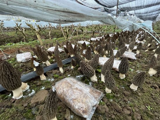 測(cè)產(chǎn)地點(diǎn)在武勝縣猛山鄉(xiāng)猛山村一組。測(cè)產(chǎn)結(jié)果,桑園套種羊肚菌的鮮菇畝產(chǎn)為398.0kg(按凈作面積300m2/畝計(jì)算),生長(zhǎng)均勻一致、單產(chǎn)較高。桑園套種羊肚菌是高效提升桑園綜合效益的一項(xiàng)新技術(shù),是科學(xué)利用桑園土地、時(shí)間和空間資源的有力措施。充分利用寬行冬季閑地,提高土地利用率,經(jīng)濟(jì)生態(tài)效益顯著。(四川省食用菌所 張波、譚偉)