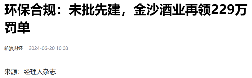 2024年3月,金沙縣自然資源局發(fā)布一則處罰公告,貴州金沙窖酒酒業(yè)有限公司因違反規(guī)劃建設(shè),被處以罰款2294541.58元,責(zé)令限時(shí)整改。公示違規(guī)事實(shí)為:公司于2022年7月開(kāi)始,未經(jīng)有權(quán)機(jī)關(guān)批準(zhǔn),未取得《建設(shè)工程規(guī)劃許可證》的情況下,在金沙縣民興街道大水社區(qū)、光明社區(qū)修建制曲八廠房、制酒十九廠。