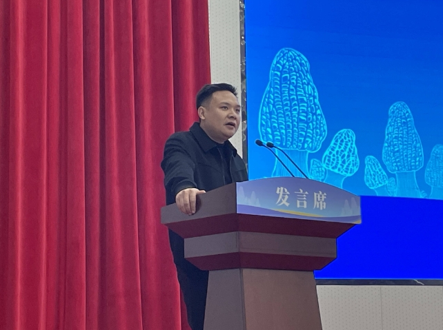四川金地田嶺澗生物科技有限公司總經理何金龍作“羊肚菌菌種經營服務新模式及產品營銷”的分享,側重介紹了公司的技術優勢及服務模式。