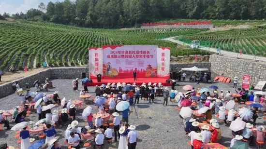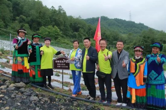 在人參果種植基地現場,16支幫扶團在種植基地參加了人參果選地塊立牌授旗儀式、甘洛縣特色產業招商引資推介會。