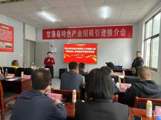 在甘洛縣特色產業招商引資推介會上,涼山片區甘洛工作組組長、易田集團董事長、易田黨支部書記滕德素在會上詳細解讀了“萬家幫萬民 助力鄉村振興‘我在甘洛有棵苗’愛心助農行動”的實施情況。