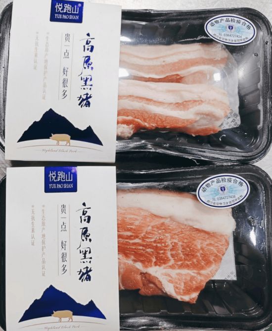 悅跑山·高原黑豬,同樣源自川鄉黑豬和烏金豬良種繁育血統,其中尤以選自海拔2000米以上的烏金豬為主,采用 “散養 + 舍飼” 模式,養足300天,肌肉纖維更細膩,肌間脂肪豐富有層次,擁有豐富的大理石花紋,其豬肉在呈味氨基酸含量、肌內脂肪含量、膽固醇含量、鐵含量、維生素 B12 含量等指標上均明顯優于普通豬肉,造就 “清水一煮就很香” 的獨特風味。