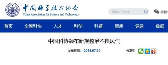 中國科協7月9日向社會公布最新出臺的有關規定,旨在加強其業務主管的科技社團作風學風建設,整治當前科技社團所舉辦活動中的不良風氣。