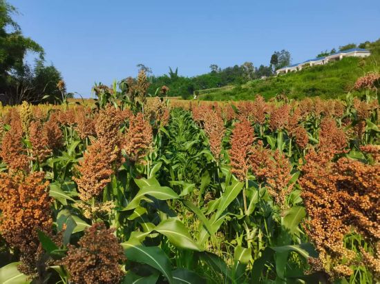 今年鐵清酒業釀酒專用糧基地首次采用“機收為主、人工為輔”的收割模式,7月16日新型自動收割機3小時收了25畝,收獲效率是人工收獲的50倍以上,損耗率降低20%以上。這一突破源于多方協同的創新探索:作為宜賓市“產教”融合示范基地,鐵清酒業聯合四川輕化工大學(中國白酒學院),在四川省釀酒專用糧工程技術研究中心、四川西科集團、宜賓市節能環保協會、江安縣農業農村局、江安縣老科協、鐵清鎮人民政府等單位指導下,選用宜糯紅7號、宜糯紅3號、川粱紅9號等優質雜交高粱品種,通過江安縣2025年高粱品種展示與品比試驗暨釀酒質量對比研究項目科研攻關,探索出種養循環的有機生產高效發展新路。