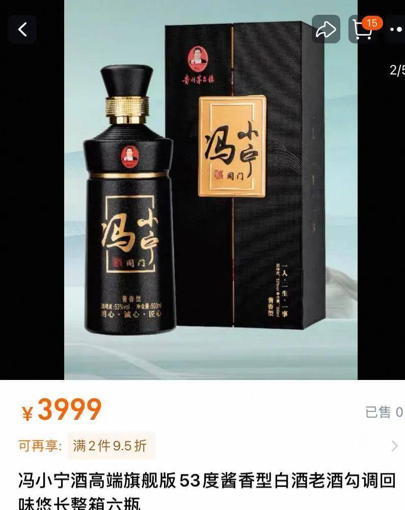 搜索發(fā)現(xiàn),在電商網(wǎng)站上有不少打著“馮小寧”名字宣傳的醬酒,比如“貴州馮小寧傳釀大師醬香型白酒”“馮小寧親筆簽名原茅臺特制酒廠特制出品”“賴家慶馮小寧大師臻制白酒”“四方九品馮小寧大師傳承53度醬香型白酒”等。有的白酒直接命名“馮小寧”,但在不起眼處有“同門”兩個小字。