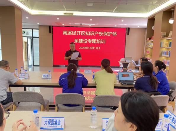 為推進南溪經(jīng)開區(qū)知識產(chǎn)權(quán)保護體系建設(shè),助力園區(qū)企業(yè)提升知識產(chǎn)權(quán)創(chuàng)造、運用、保護和管理能力,推動區(qū)域經(jīng)濟高質(zhì)量發(fā)展,近日,南溪區(qū)市場監(jiān)管局和南溪區(qū)企業(yè)綜合服務(wù)中心共同組織開展了“南溪經(jīng)濟開發(fā)區(qū)知識產(chǎn)權(quán)保護體系建設(shè)”專題培訓(xùn)。